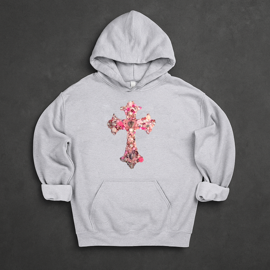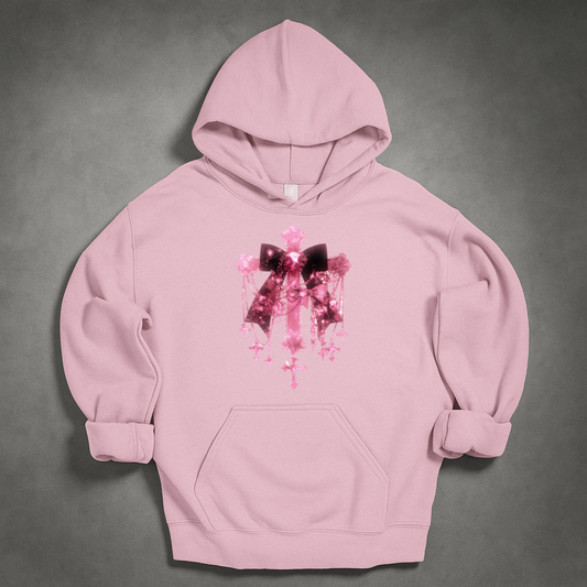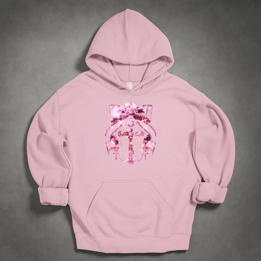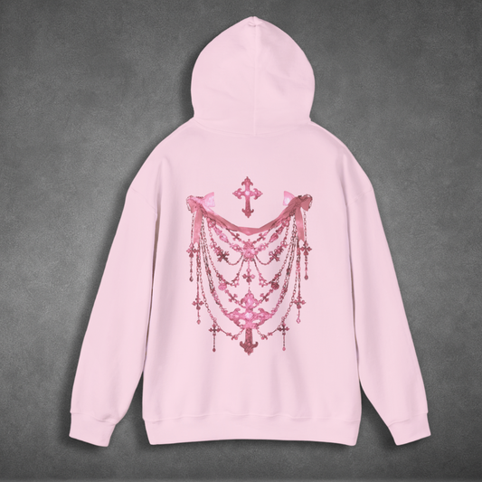 Gothic Pink Ribbon Cross Jewellery Hoodie
