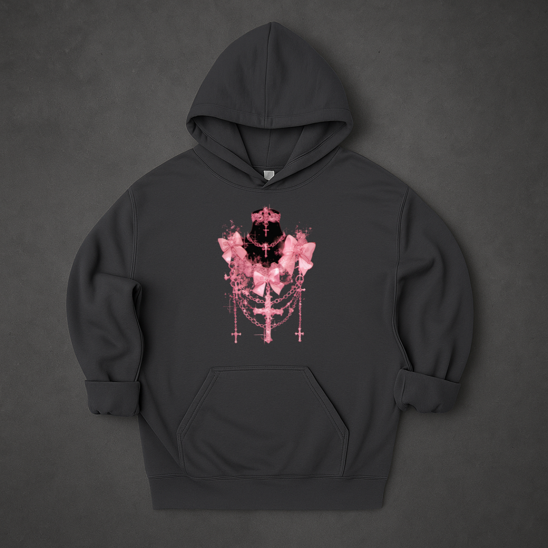 Gothic Pink Ribbon Cross Jewellery Hoodie